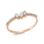 Ring 14 kt RG, 3 Bag. 0,18 ct, F-vsi, 14 Brill. 0,07 ct, F-si