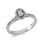Ring 14 kt WG Oval. 1 Navette 0.12 ct. F-vsi. 28 Brillanten 0.17 ct. F-si. H:6.2 mm. B:7.3 mm. Weite:52