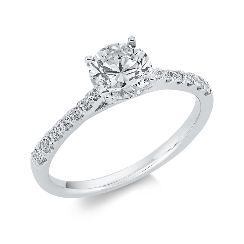 Ring 4er-Krappe 18 kt WG. GIA6475213697. 1 Brill. 1.00 ct. TW-vs2. 14 Brillanten 0.19 ct. TW-si. Weite:54