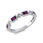 Ring 18 kt WG, 5 Brill. 0,10 ct, TW-si, 4 Rubine 0,68 ct rot