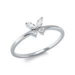 Ring 18 kt WG Schmetterling. 2 Navette 0.10 ct. TW-vsi. 2 Tropfen 0.06 ct. TW-vsi. H:6.0 mm. B:5.4 mm. Weite:53