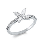 Ring 18 kt WG. 4 Navette 0.54 ct. TW-vsi. 22 Brillanten 0.14 ct. TW-si. H:8.1 mm. B:7.9 mm. Weite:53