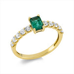Ring 18 kt GG, 10 Brill. 0,45 ct, TW-si, 1 Smaragd 0,51 ct grün