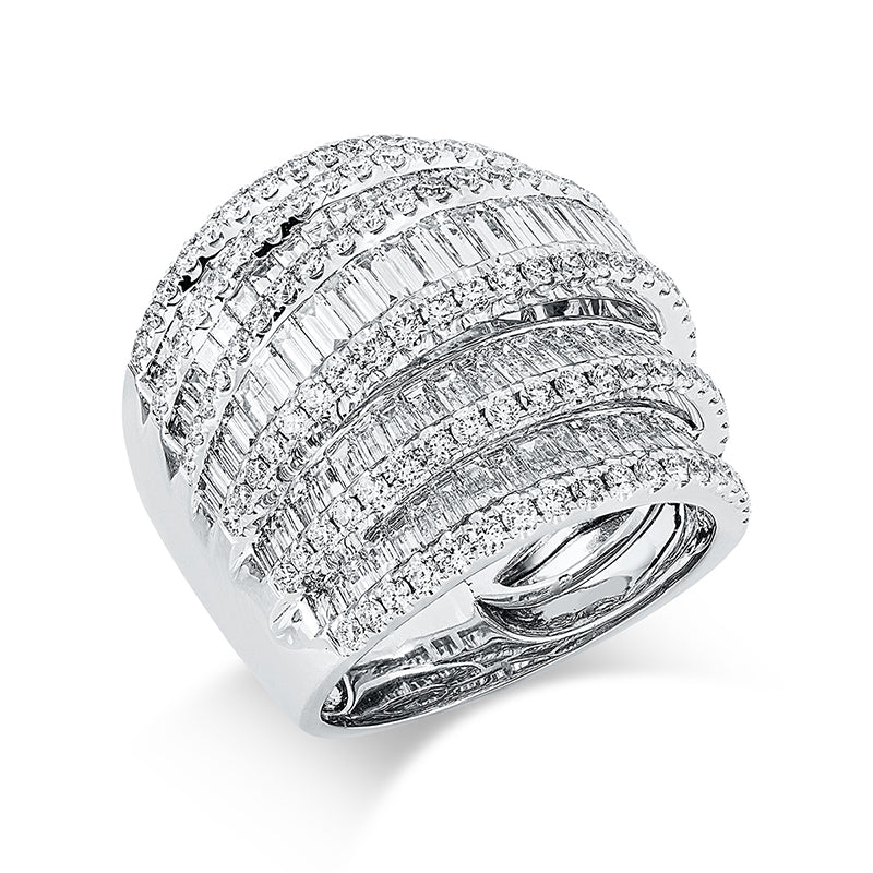 Ring 18 kt WG, 115 Trap. 3,68 ct, TW-si, 126 Brill. 1,29 ct, TW-si