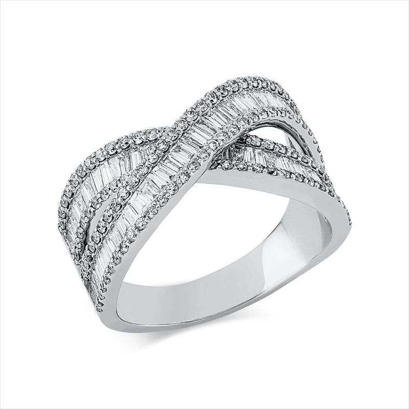 Ring 18 kt WG, 71 Trap. 0,85 ct, F-vsi, 120 Brill. 0,51 ct, F-si