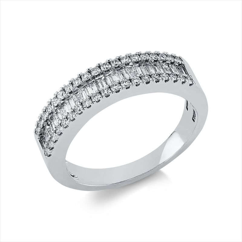Ring 18 kt WG. 20 Baguette 0.32 ct. F-vsi. 36 Brillanten 0.24 ct. F-si. Weite:52