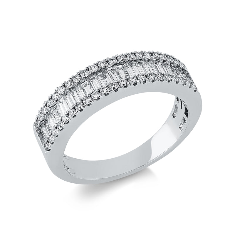 Ring 18 kt WG. 20 Baguette 0.57 ct. F-vsi. 42 Brillanten 0.27 ct. F-si. Weite:54