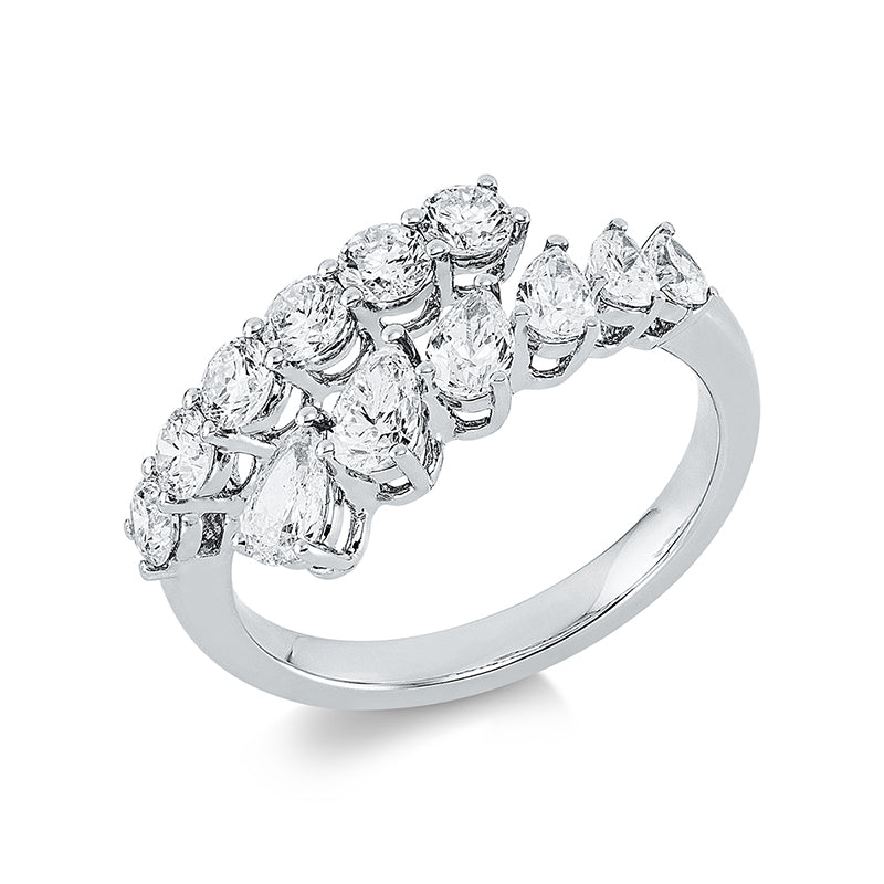Ring 18 kt WG. 6 Tropfen 0.84 ct. TW-si. 6 Brillanten 0.73 ct. TW-pi. Weite:54