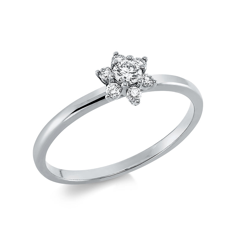 Ring 18 kt WG. 1 Brill. 0.14 ct. TW-si. 6 Brillanten 0.11 ct. TW-si. Weite:54