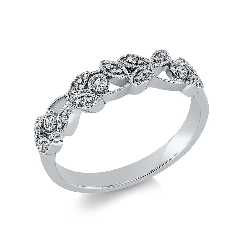 Ring 18 kt WG Blätter. 3 Brillanten 0.06 ct. TW-vsi. 11 Brillanten 0.07 ct. TW-vsi. B:4.9 mm. Weite:54