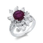 Ring 18 kt WG, 16 Tropfen 2,38 ct, TW-si, 32 Brill. 0,19 ct, TW-si, 1 Rubin 2,34 ct rot