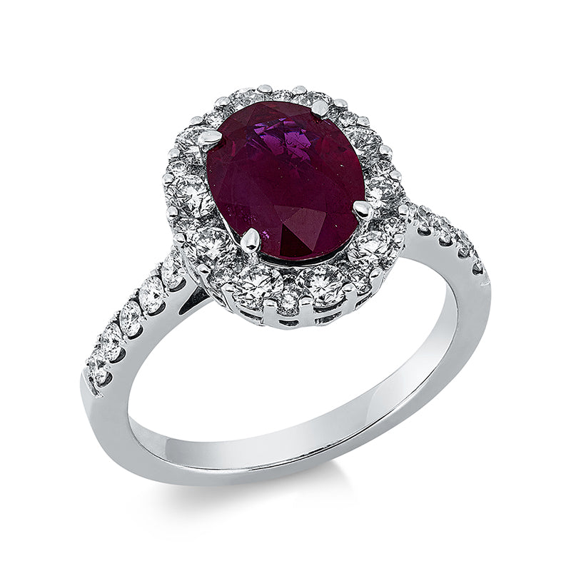 Ring 18 kt WG. 40 Brillanten 0.90 ct. TW-si. 1 Rubin 1.94 ct rot. Weite:53