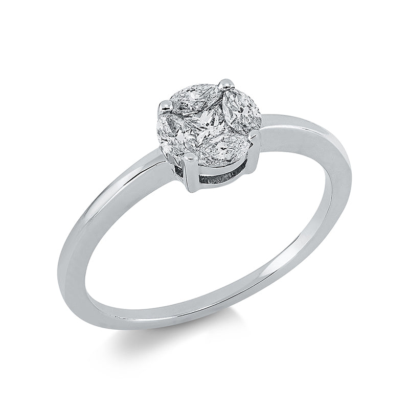 Ring 18 kt WG. 1 Princ. 0.07 ct. W-si. 4 Navette 0.28 ct. W-si. Weite:54