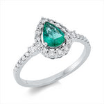 Ring 18 kt WG. 2 Brillanten 0.08 ct. TW-si. 24 Brillanten 0.38 ct. TW-si. 1 Smaragd 0.48 ct grün. Weite:54
