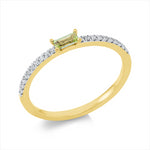 Ring 18 kt GG, Fassung rhodiniert, 20 Brill. 0,09 ct, TW-si, 1 Peridot 0,14 ct grün