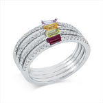 Ring 18 kt WG, 80 Brill. 0,48 ct, TW-si, 1 Citrin 0,17 ct gelb, 1 Peridot 0,14 ct grün, 1 Amethyst 0,09 ct lila, 1 Rubin 0,16 ct rot