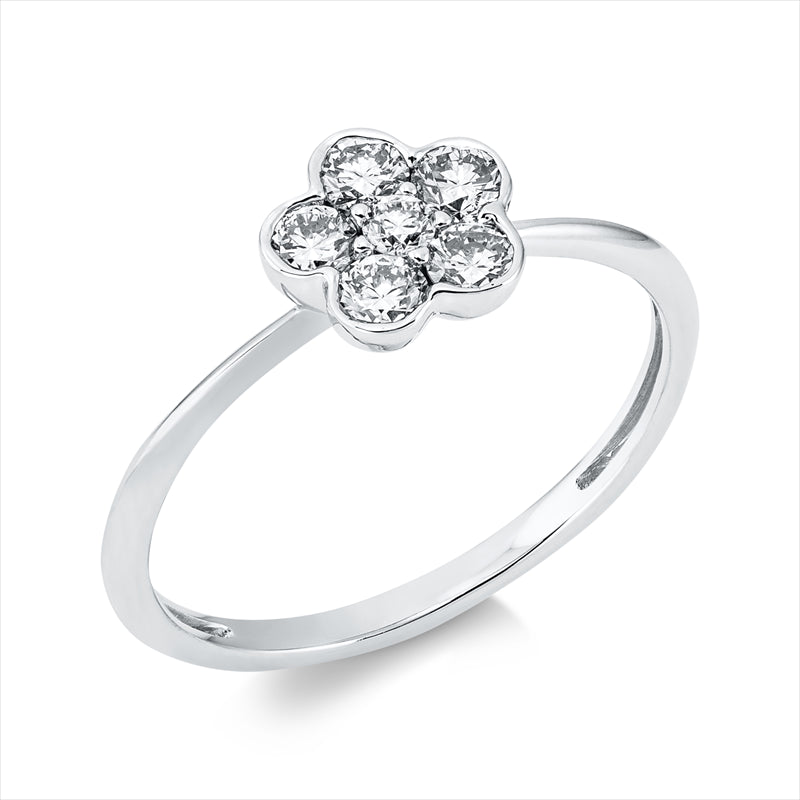 Ring 18 kt WG. 1 Brill. 0.04 ct. TW-si. 5 Brillanten 0.43 ct. TW-si. Weite:54
