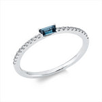 Ring 18 kt WG. 20 Brillanten 0.09 ct. TW-si. 1 Topas 0.14 ct Lond. blue. H:4.6 mm. B:2.4 mm. Weite:54
