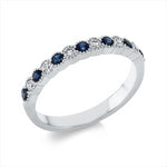 Ring 18 kt WG. 6 Brillanten 0.19 ct. W-si. 7 Saphire 0.29 ct blau. Weite:54