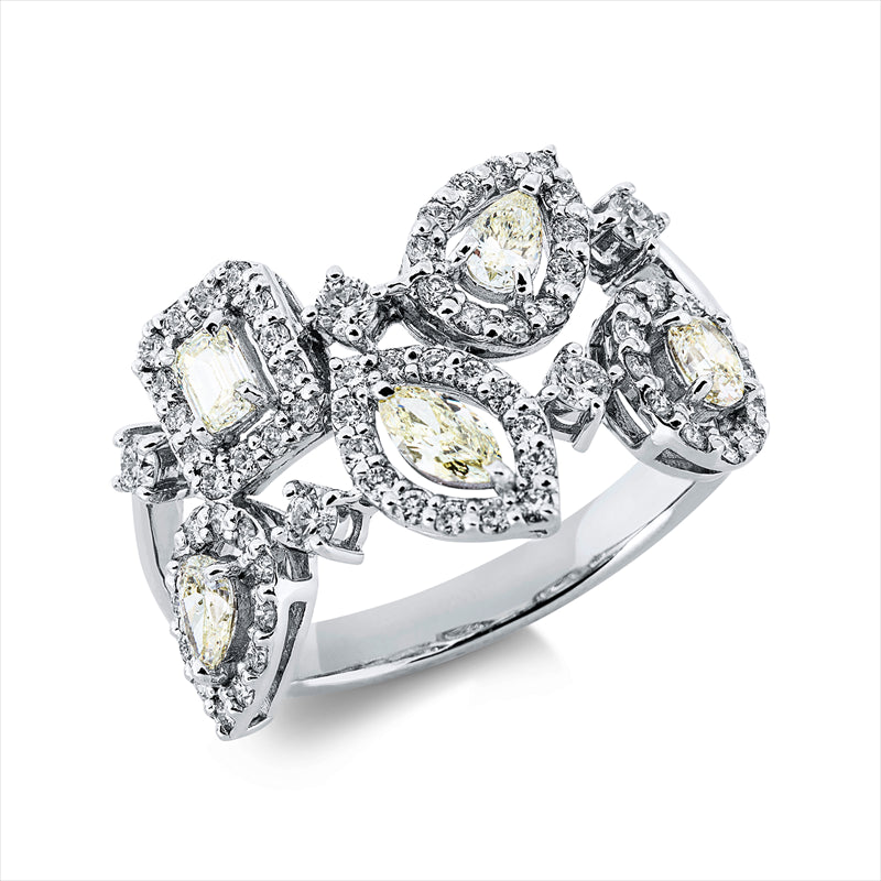 Ring 950 Pt Platin. 70 Brillanten 0.55 ct. TW-si. 5 Fant-Schl. 0.58 ct. gelb. Weite:57