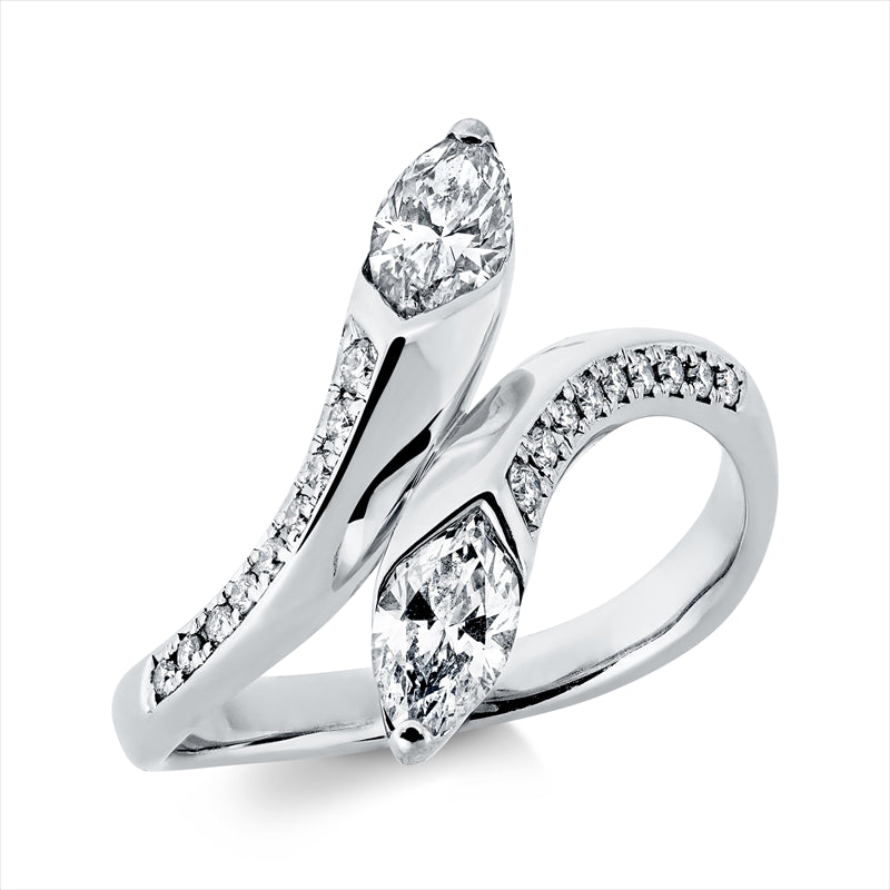 Ring 900 Pt Platin. 2 Navette 0.68 ct. TW-si. 18 Brillanten 0.13 ct. TW-si. Weite:53