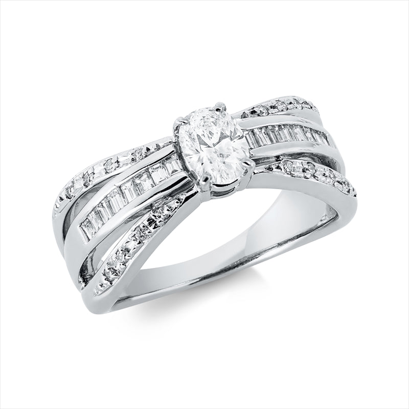 Ring 900 Pt Platin. 1 Oval 0.57 ct. TW-si. 32 Fant-Schl. 0.41 ct. TW-si. Weite:56