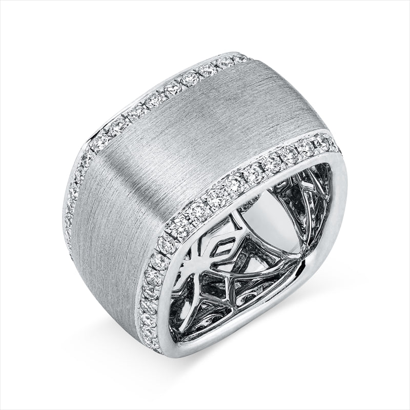 Ring 18 kt WG. mattiert. 72 Brillanten 1.59 ct. TW-vsi/si. B:13.6 mm. Weite:55