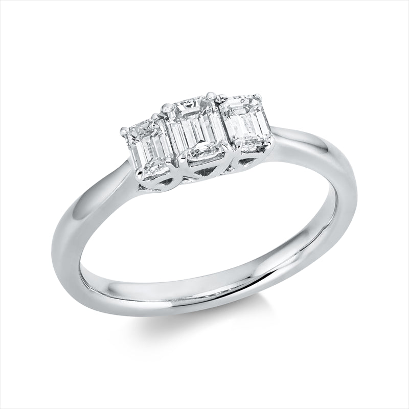 Ring 18 kt WG. 3 Sm.schliff 0.64 ct. TW-si. H:9.2 mm. B:4.6 mm. Weite:53