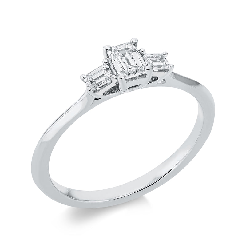 Ring 18 kt WG. 1 Sm.schliff 0.27 ct. TW-si. 2 Sm.schliff 0.16 ct. TW-si. Weite:54
