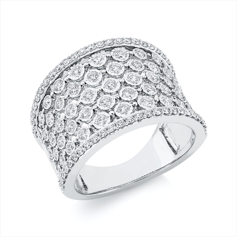 Ring 18 kt WG. 43 Brillanten 0.62 ct. TW-si. 60 Brillanten 0.46 ct. TW-si. B:15.4 mm. Weite:54