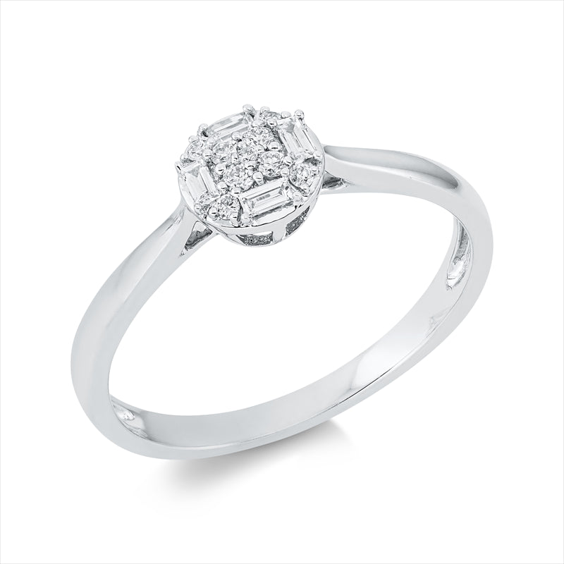 Ring 18 kt WG. 4 Brillanten 0.04 ct. TW-si. 4 Baguette 0.08 ct. TW. 5 Brillanten 0.03 ct. TW-si. Weite:54