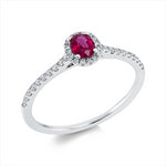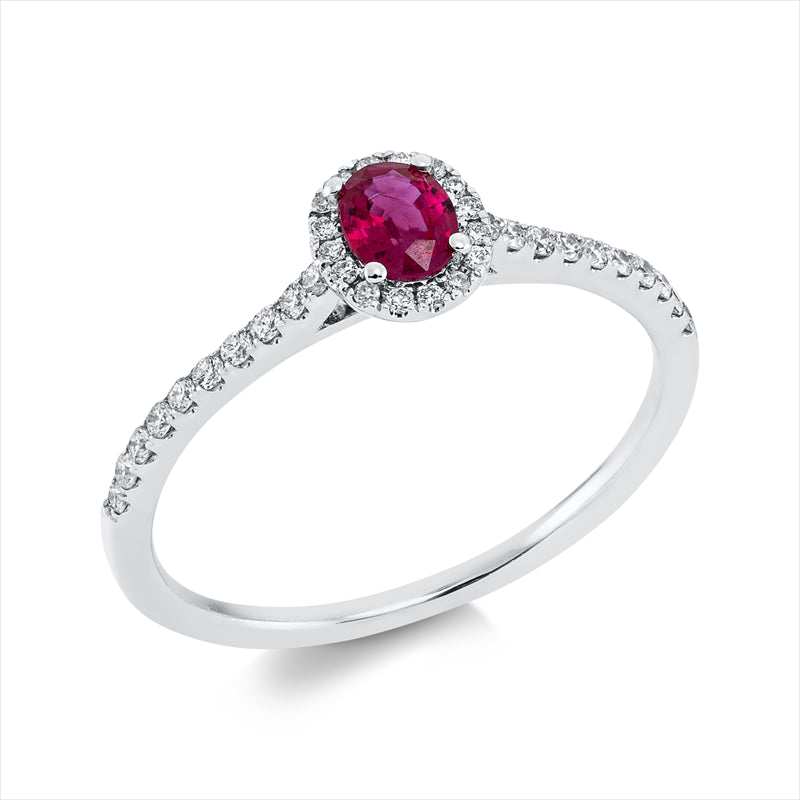 Ring 18 kt WG, 36 Brill. 0,18 ct, TW-si, 1 Rubin 0,30 ct rot