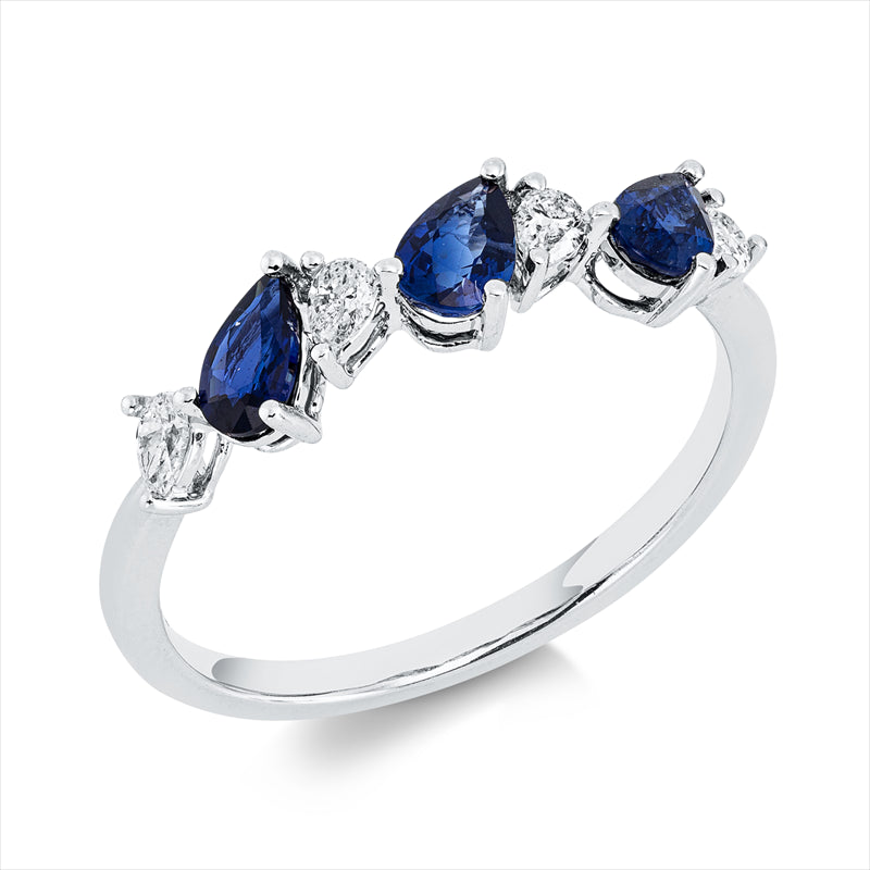 Ring 18 kt WG. 4 Tropfen 0.20 ct. TW-vsi/si. 3 Saphire 0.62 ct blau. Weite:53