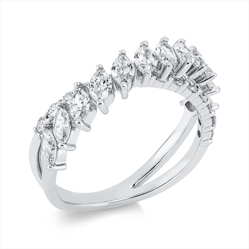 Ring 18 kt WG. 12 Navette 1.21 ct. TW-si. 14 Brillanten 0.36 ct. TW-si. Weite:53