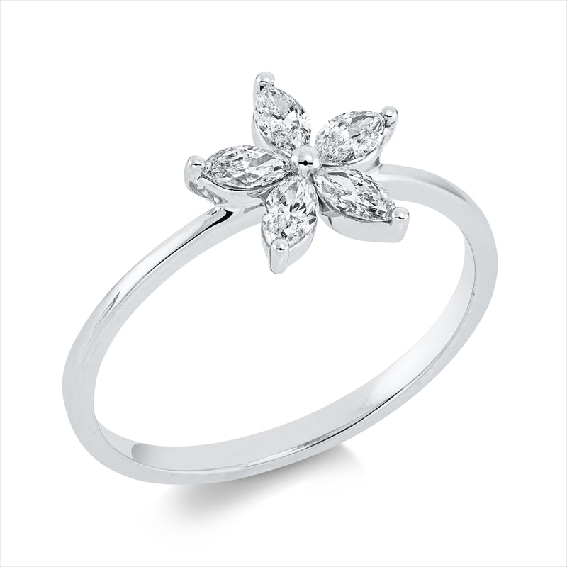 Ring 18 kt WG Stern. 5 Navette 0.37 ct. TW-si. H:9.3 mm. B:9.3 mm. Weite:53