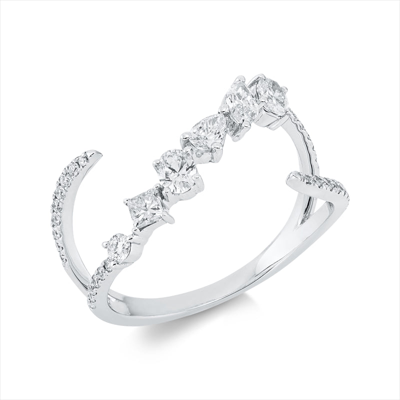 Ring 18 kt WG, 1 Nav. 0,10 ct, TW-si, 2 Oval 0,23 ct, TW-si, 1 Tropfen 0,10 ct, TW-si, 31 Brill. 0,19 ct, TW-si