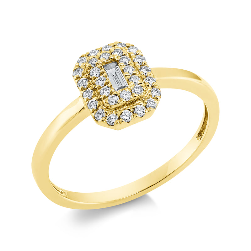 Ring 18 kt GG. 1 Bag. 0.05 ct. TW-vsi. 30 Brillanten 0.19 ct. TW-si. Weite:53