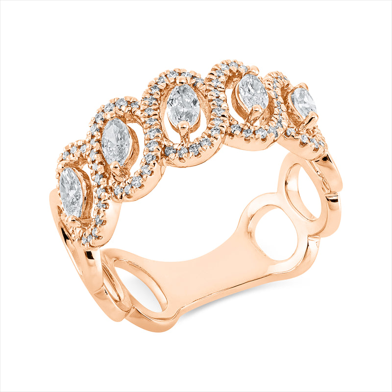 Ring 18 kt RG, 5 Nav. 0,45 ct, TW-vsi, 78 Brill. 0,21 ct, TW-si