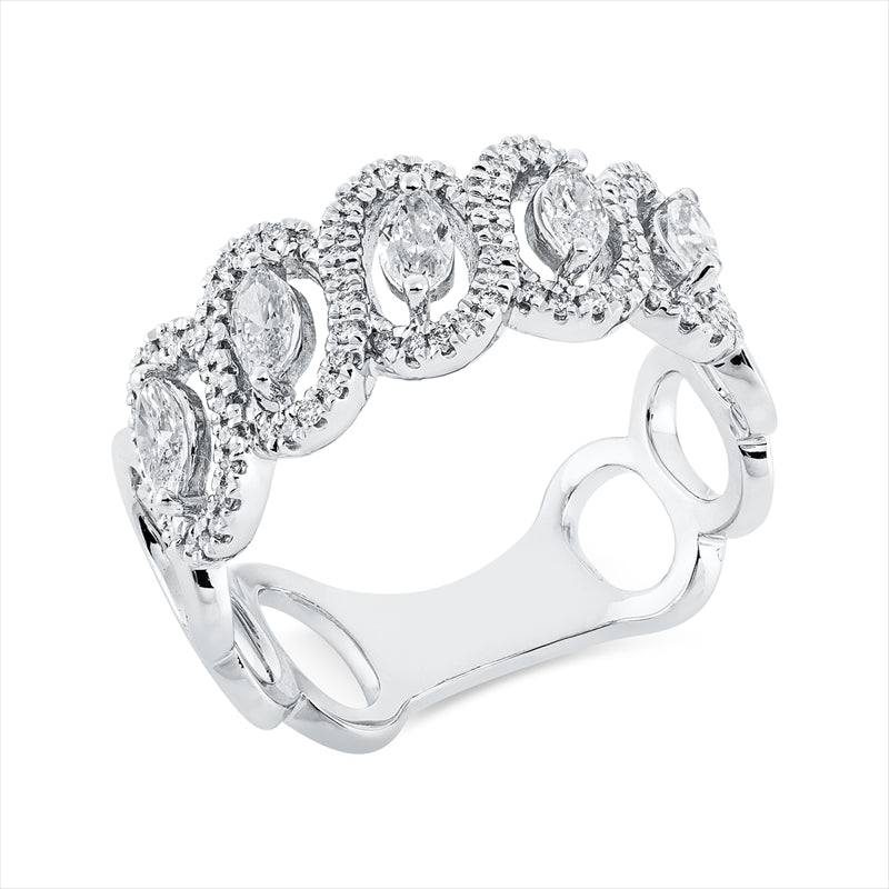 Ring 18 kt WG. 5 Navette 0.45 ct. TW-vsi. 78 Brillanten 0.21 ct. TW-si. Weite:53