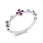 Ring 18 kt WG, 4 Brill. 0,13 ct, TW-si, 15 Rubine 0,27 ct rot