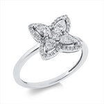 Ring 18 kt WG. 4 Tropfen 0.40 ct. TW-vsi. 41 Brillanten 0.21 ct. TW-si. Weite:53