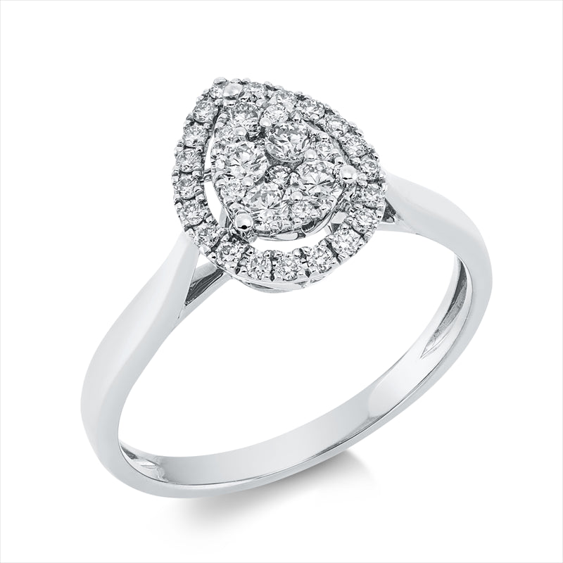 Ring 18 kt WG Tropfen. 32 Brillanten 0.37 ct. TW-pi. Weite:54