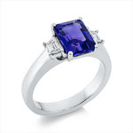 Ring 950 Pt Platin, 2 Trap. 0,29 ct, TW-vsi, 1 Tansanit 2,85 ct blau