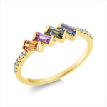 Ring 18 kt GG, 12 Brill. 0,08 ct, TW-si, 4 Saphire 0,59 ct fancy