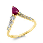 Ring 18 kt GG. 29 Brillanten 0.32 ct. TW-si. 1 Rubin 0.44 ct rot. Weite:53
