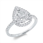 Ring 18 kt WG Tropfen. 4 Princ. 0.12 ct. TW-si. 45 Brillanten 0.75 ct. TW-si. Weite:53.5