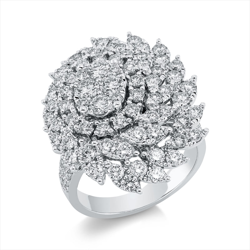 Ring 18 kt WG. 4 Brillanten 0.51 ct. TW-si. 106 Brillanten 2.45 ct. TW-si. Weite:54.5
