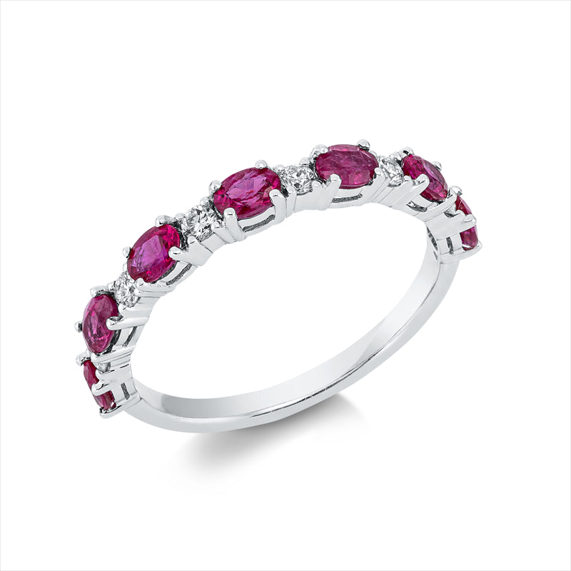 Ring 18 kt WG, 6 Brill. 0,15 ct, TW-si, 7 Rubine 0,89 ct rot