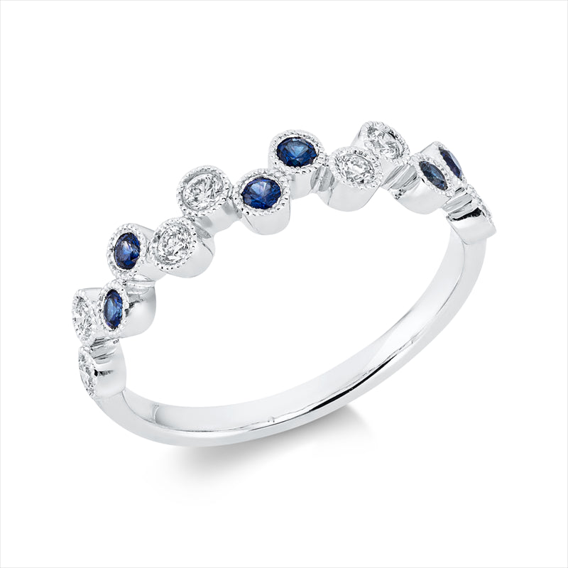 Ring Zarge 18 kt WG. 7 Brillanten 0.19 ct. TW-si. 6 Saphire 0.17 ct blau. Weite:53.5