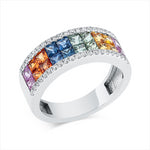 Ring 14 kt WG. 42 Brillanten 0.28 ct. F-si. 20 Saphire 2.23 ct fancy. Weite:54